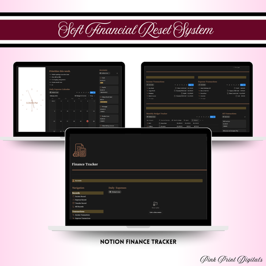 Soft Financial Reset System | Budget Trackers, Debt Snowball, Notion Planners & Finance Planner Bundle